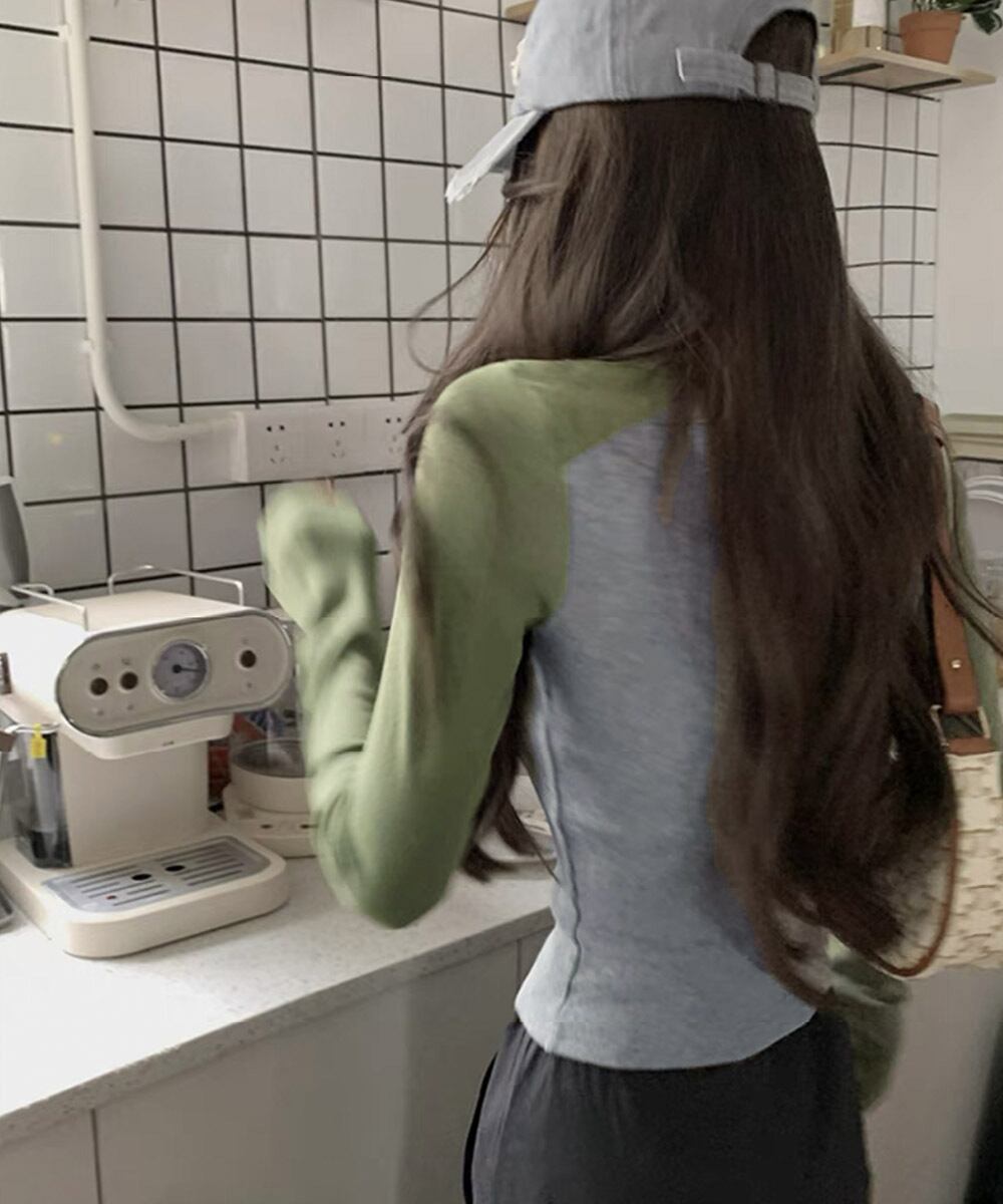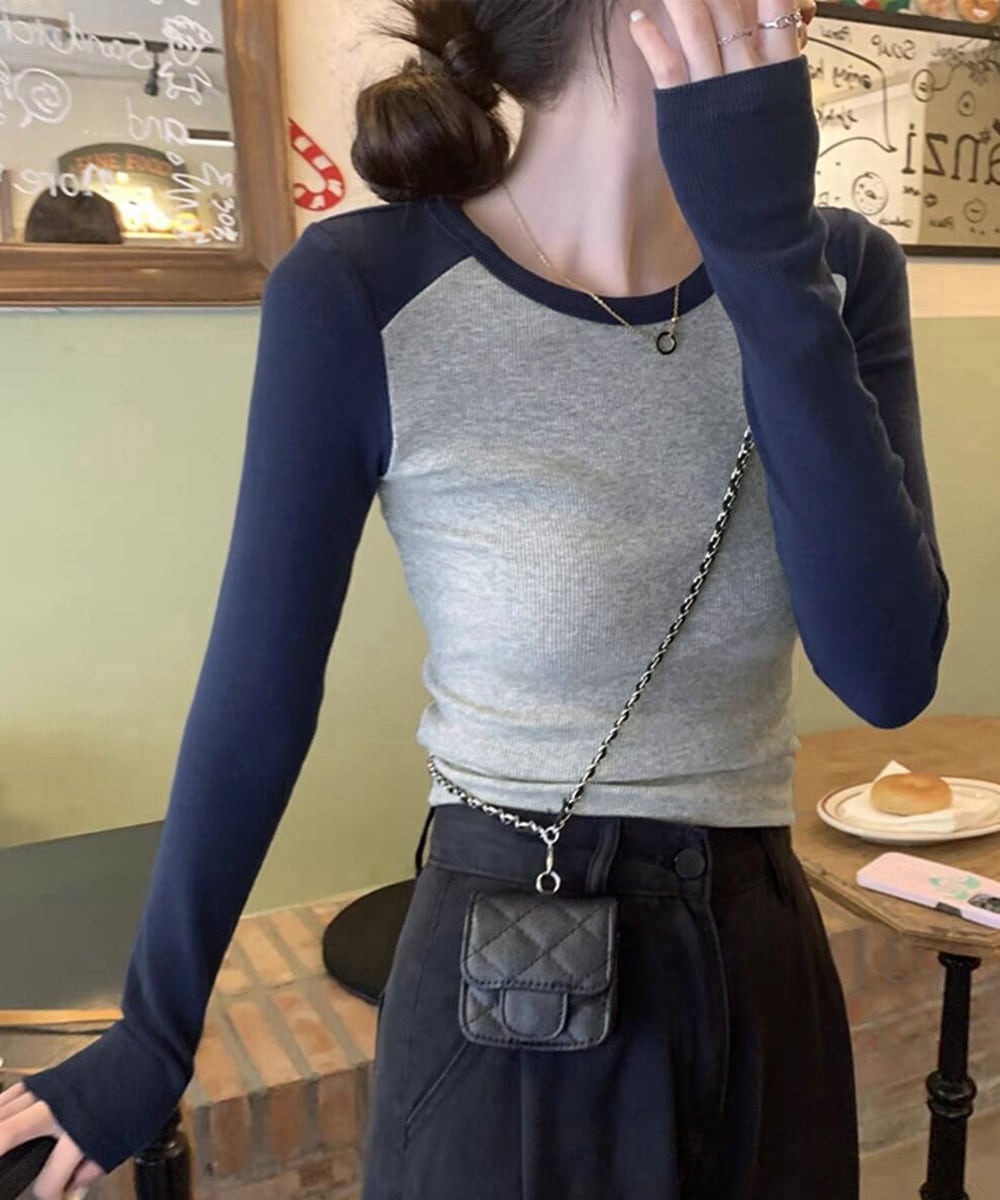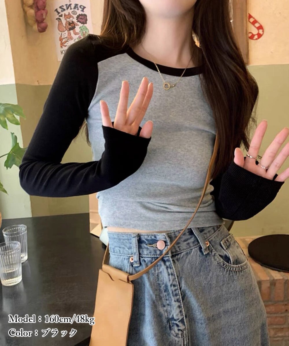 ▼BICOLOR LONG SLEEVE TOPS ラウンドネック タイト 285